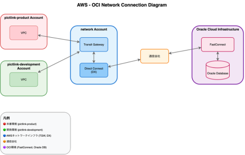 - 粟田様:「ピクトリンク」のインフラは、AWSとOCI(Oracle Cloud Infrastructure)を併用したマルチクラウド構成になっています。当初はオンプレミスで運用していましたが、データセンターの老朽化に伴い、クラウドへの移行を検討することとなり、現在の構成に至りました。この構成に至った背景として、当初からAWSを利用できる環境にあったため、AWSをベースに検討を進めていました。ただ、オンプレミスで稼働していた既存のOracle Database環境をAWSで動かすにあたっては、投資と性能の最適化を図るため、OCIも選択肢に含めて検証を行いました。必要な性能を担保しつつ、投資効果を最大化した結果、現在のAWSとOCIのマルチクラウド構成に至りました。