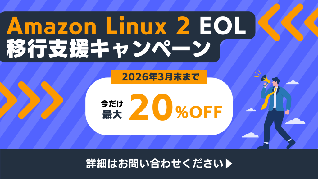 この度、当社は AWS 環境で広く利用されているオペレーティングシステム Amazon Linux 2 のサポート終了(EOL:End-of-Life)に向け、移行支援を強化した「Amazon Linux 2 EOL 移行支援キャンペーン」を開始いたします。