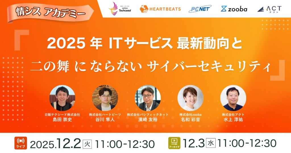 | 登壇企業 | 株式会社ハートビーツ、株式会社zooba、株式会社アクト、日販テクシード株式会社、株式会社パシフィックネット(計5社) |