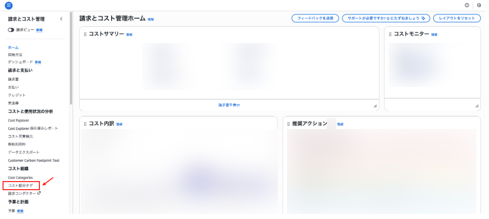 設定後、Billing画面や関連サービスにタグ情報が反映され、コスト配分タグページの一覧に表示されるまで、最大24時間程度かかる場合があります。